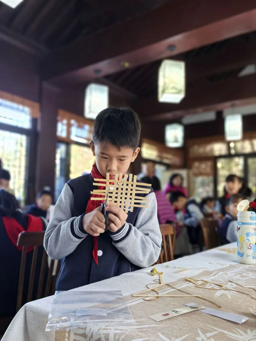 为传承中华优秀传统文化,近距离感受非物质文化遗产的独特魅力,近日,山东师范大学附属小学2024级8班向阳中队30余名小队成员前往“这山慧”森活美学馆,开展以“探秘竹编非遗,指尖传承经典”为主题的研学实践活动,在动手实践中触摸非遗温度,在文化浸润中收获成长。