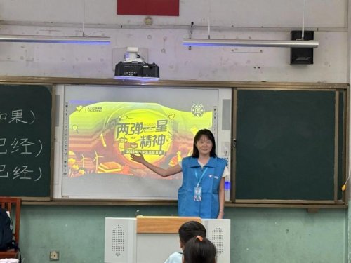 宣讲伊始,宣讲团成员刘晓兵以“同学们,你们知道什么是‘两弹一星’吗?”这一互动问题开启讲座,迅速激发了小学生的浓厚兴趣。通过精心准备的图文资料与深入浅出的讲解,邓稼先、钱学森、于敏等科学巨匠毅然归国、隐姓埋名、艰苦创业的感人事迹深深触动了在场师生。宣讲系统梳理了在中国共产党领导下,我国核事业从零起步到取得历史性突破的奋斗历程,深刻阐释了“两弹一星”精神的时代内涵与传承价值。