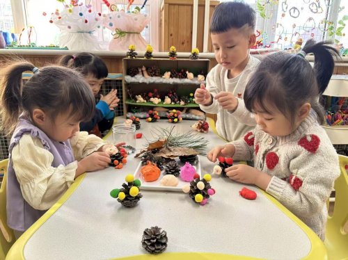 沧州市民族幼儿园的孩子们化身“魔法师”,开启了一场精彩的“松果变形记”。活动源于孩子们在户外收集的松果、松叶和松脂,在老师的引导下,这些天然材料与黏土、彩纸、颜料、毛线等完美结合。孩子们发挥天马行空的想象力,巧手制作出松果小动物、松叶贴画、松脂香薰等充满童趣的作品。