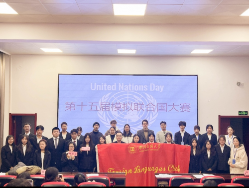 2025年11月27日晚,湖北民族大学外语俱乐部与国际交流合作处联合主办的第十五届模拟联合国大赛决赛在外国语学院学术演播厅举行。本届大赛的决赛围绕核心议题“在数字时代保护与促进文化表达多样性:应对全球平台下的文化同质化挑战”,8个代表国家在模拟国际议事中碰撞思想、共寻解决方案。