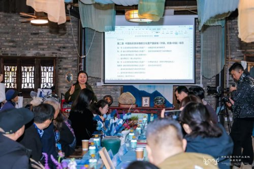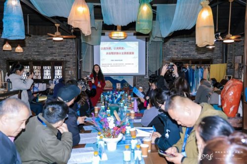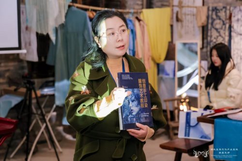 论坛环节分为“专家论坛”与“传承人论坛”两大板块。在专家论坛板块,华中师范大学国家文化产业研究中心孙传明教授分享了“AI时代纺织类非遗的创新性发展”,并通过丰富的案例探讨了AI技术对纺织印染类非遗的创新性转化与创造性发展。西安美术学院石历丽教授分享了“以染为媒,以美赋能,共创鄂陕融合发展”的思考。德清集彩文化创意有限公司宋立董事长分享了“天然染色市场应用”。中国纺织工程学会非遗印染科普传播专家、武汉纺织大学王妮副教授分享了“中国纺织非遗印染专题研究概述”。在传承人论坛板块,多位来自武汉、宜昌、襄阳、黄冈、天门、江夏等地的非遗传承人,结合自身实践,讲述了蓝染技艺在当代的守正创新、工坊运营与公益融合之路。其中,襄阳鸿岳扎染坊主理人朱小妮分享了以植物染技艺助力自闭症青年就业的实践,展现了非遗融入公益、赋能特殊群体的社会温度。