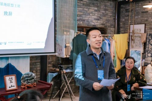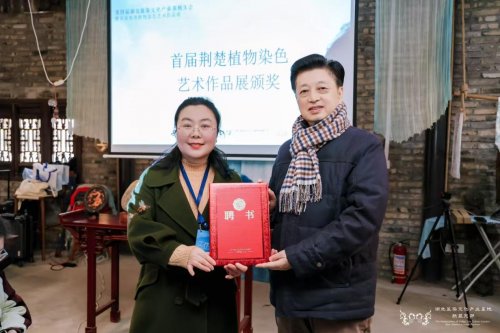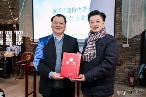 大会举行了新一届联盟任职授聘仪式,聘请华中师范大学国家文化产业研究中心主任孙传明教授担任湖北蓝染文化产业基地联盟主席,华中师范大学研究员石炜、西安美术学院教授石历丽、武汉纺织大学副教授王妮、黄冈蓝靛染色省级非遗传承人陈小莲担任湖北蓝染文化产业基地联盟副主席。湖北中华文化促进会常务副主席肖安民向孙传明、石炜、石丽历、王妮、陈小莲颁发联盟聘任证书。联盟主席孙传明向王子丹、于栋、孟小琴和杨青华颁授联盟秘书长聘书,向陈玲、王玲超、朱小妮、程利颁授联盟副秘书长聘书;联盟副主席石炜向武汉纺织大学郭海燕副教授颁授蓝染文化产业基地联盟特聘秀导聘书。此外,大会还为黄石和辰草木染、小朱湾田肆集非遗工坊两家新晋基地授牌,并为陈小莲传承人工作室设立的研究生工作站揭牌。孙传明主席在致辞中表示,当前,湖北省委、省政府正大力加强荆楚文化资源保护和推动文化创新发展,以系统性举措整体提升支点的文化影响力。产业联盟也将持续搭建产学研协同创新平台,推动植物染技艺与现代科技、设计、市场深度融合,并积极履行社会责任,为文化强省建设和人民美好生活贡献联盟的智慧与力量。会议由华中师范大学研究员、湖北蓝染文化产业基地联盟副主席石炜主持。