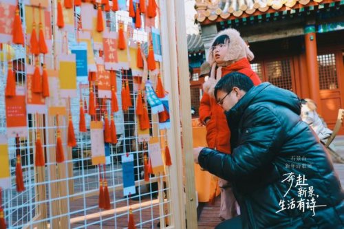 在“古道斯存”民俗陈列馆,人们既可了解模式口的历史,也可在特设的诗笺区写下或抄录一首短诗,让新年从一句诗意的心声开始。一旁的诗歌接龙与“书香石景山”主题书摊,则让浮躁的心绪于文字里慢慢沉淀。
