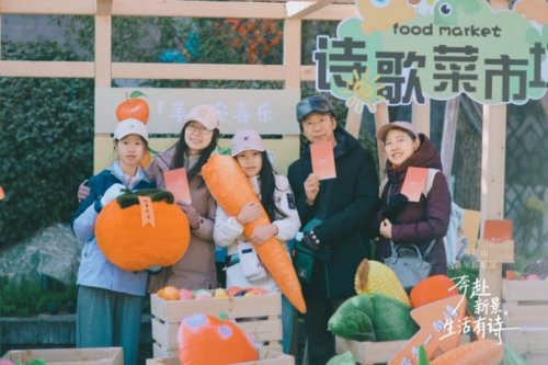走进用蔬菜瓜果装点的“诗歌菜市场”,最朴素的烟火气也被赋予诗意的注脚,引得游客纷纷打卡拍照。