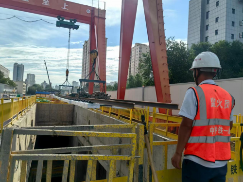 “各岗位注意,准备吊装轨排。检查吊具、轨排连接及周围环境,确保无误后汇报。”在乌鲁木齐轨道交通二号线农大铺轨基地,综合队队长陈建武的指令清晰穿透机械轰鸣。因相关作业人员暂未到岗,他主动扛起起重指挥的重任,目光紧锁缓缓升起的轨排,“缓慢起钩,注意平衡”“停,调整挂钩位置”——每一句指令都精准有力,仿佛他手中的指挥棒,为这场地下工程的“后勤战役”定调。