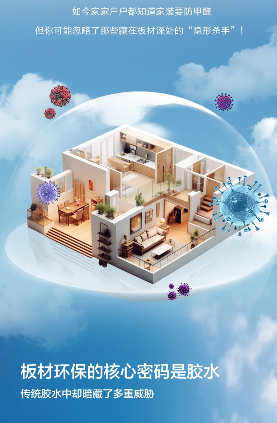 而板材甲醛的根源,从来不是木材本身,而是生产过程中使用的胶黏剂。市面上绝大多数普通板材,采用的都是成本低廉的脲醛树脂胶,这种胶黏剂以甲醛为核心生产原料,不仅生产过程中会残留大量游离甲醛,在之后长达十余年的使用周期里,还会遇热、遇潮持续分解释放甲醛。这也是为什么很多房子晾了半年甚至一年,检测下来甲醛依旧超标的核心原因。