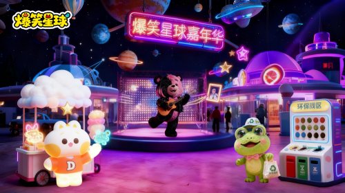 嘉年华结尾,五人一起上台表演,叮当猫的温暖魔法让全场充满笑声,大眼蛙的环保理念传递给了每个人,阿尔一百的搞怪表演点燃全场,唛唛兔和啾啾熊的潮流舞蹈让大家跟着一起跳,整个星球都沉浸在快乐中。