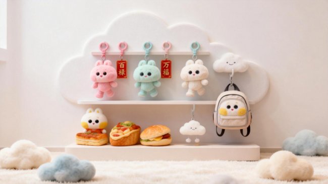 文创潮玩系列打造 “可捏、可抱、可挂、可用” 的多维度陪伴体验,六大专属系列精准适配多元需求:毛绒「国潮蹦跳」系列以回弹颗粒吊扣、磁吸福签尾巴与 3D 美食公仔,实现萌趣与福气兼具;情绪陪伴「粉云脸」系列通过盲盒与磁吸夜灯底座大娃,传递温柔守护;办公室「轻解压」系列的软硅胶捏捏乐、带治愈文案的迷你盲盒,解锁职场小确幸;传统萌化「祥云磁贴」系列以磁吸耳夹与盘扣手链,演绎国潮美学;户外「云朵随行」系列的背包毯与防晒披,兼顾便携与实用;AI 治愈陪伴玩具包含支持情绪识别的标准版、钥匙扣大小的 mini 款及远程留言夜灯,实现智能守护。全系产品选用环保材质,践行社会责任与人文关怀。